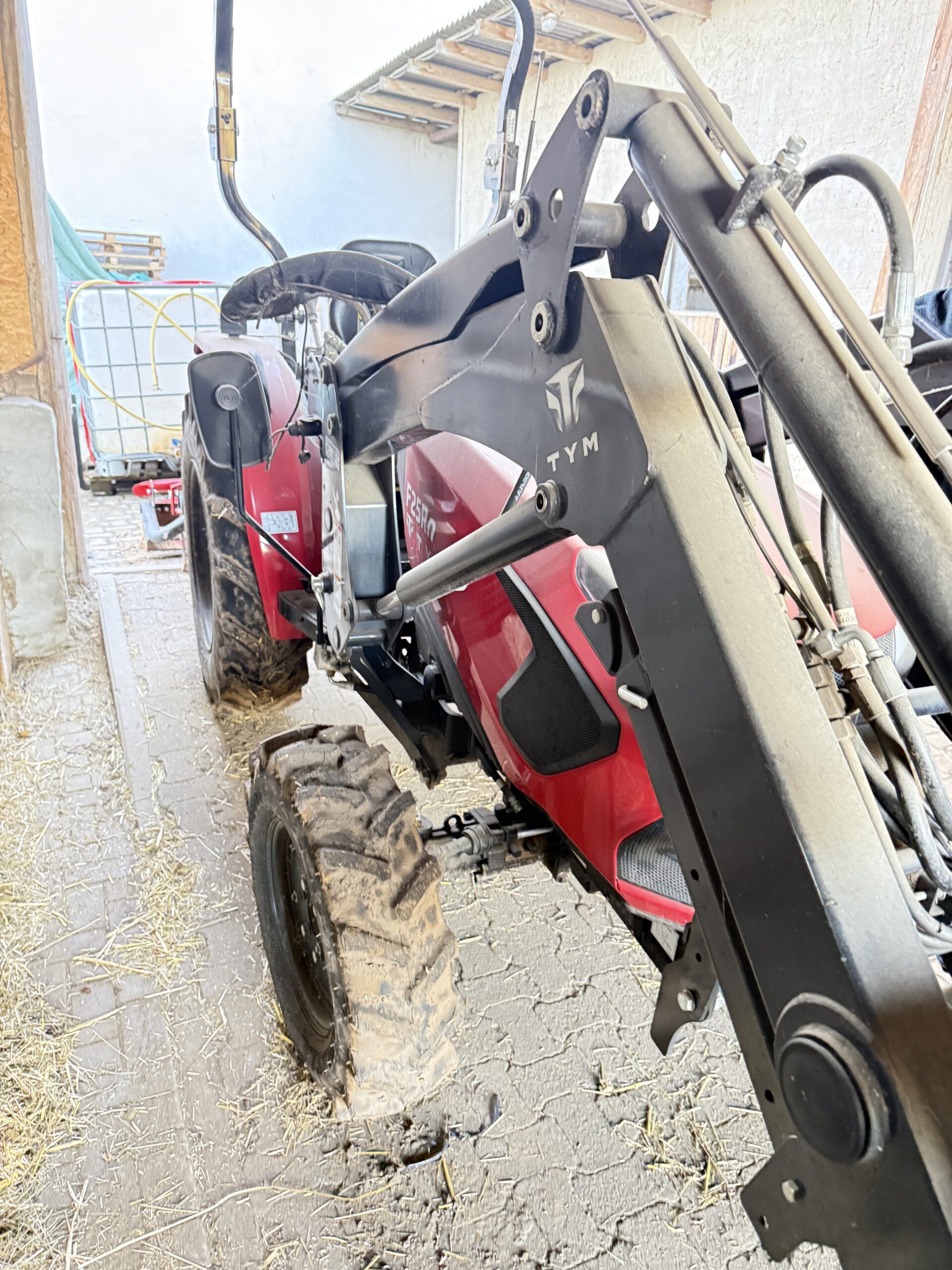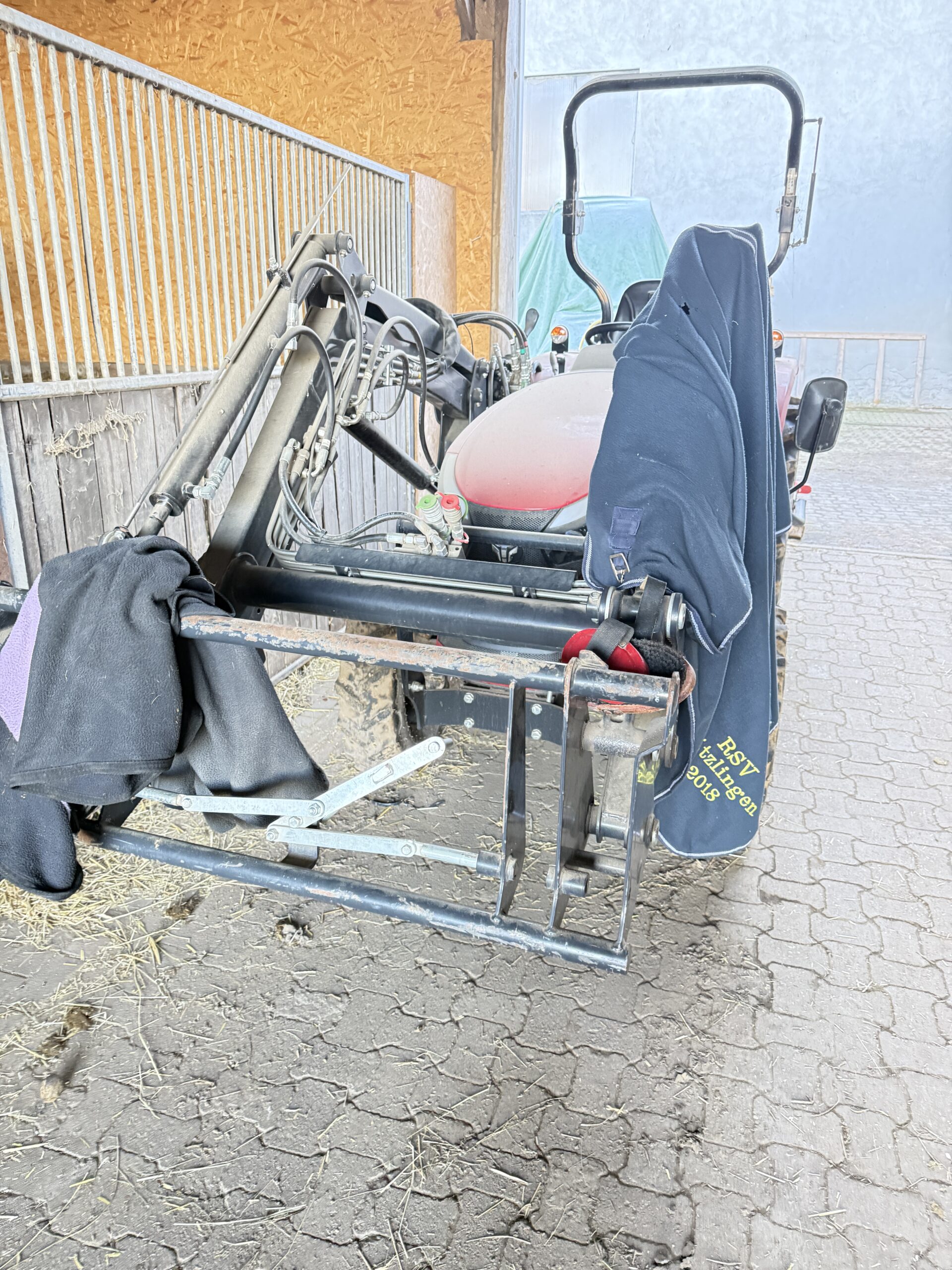 Allrad, Überrollbügel klappbar, Frontlader mit 2 Steuerkreisen, Sandschaufel 0,7 ccm, Ballengabel, 2 Spieße, 1 Palettengabel